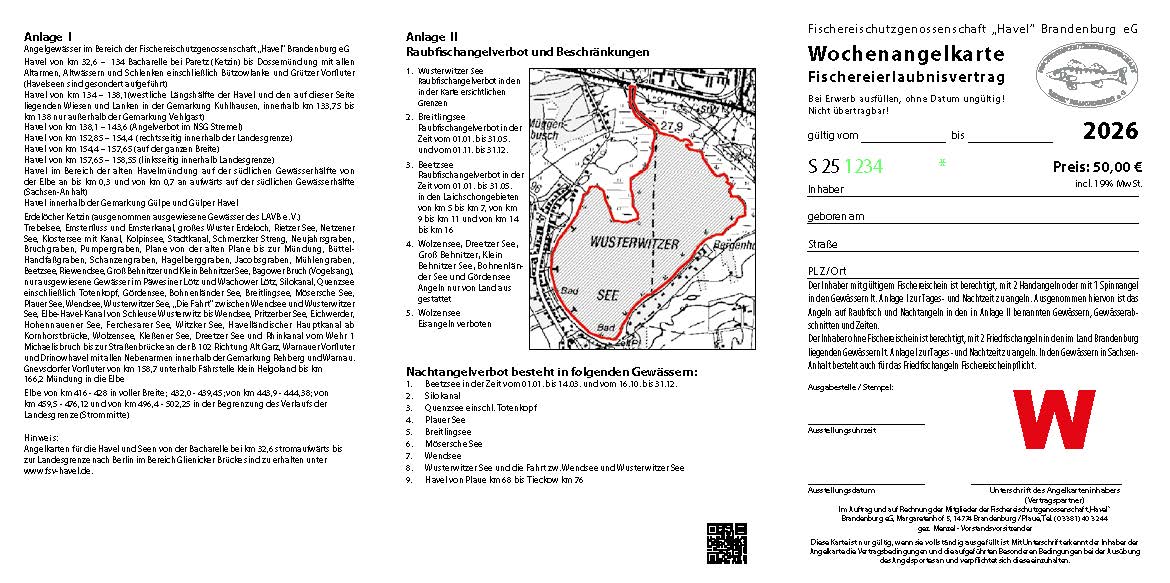 Angelgewässer "Havel, Seen und Elbe" im Bereich der Fischereischutzgenossenschaft „Havel“ Brandenburg eG, Anlage I