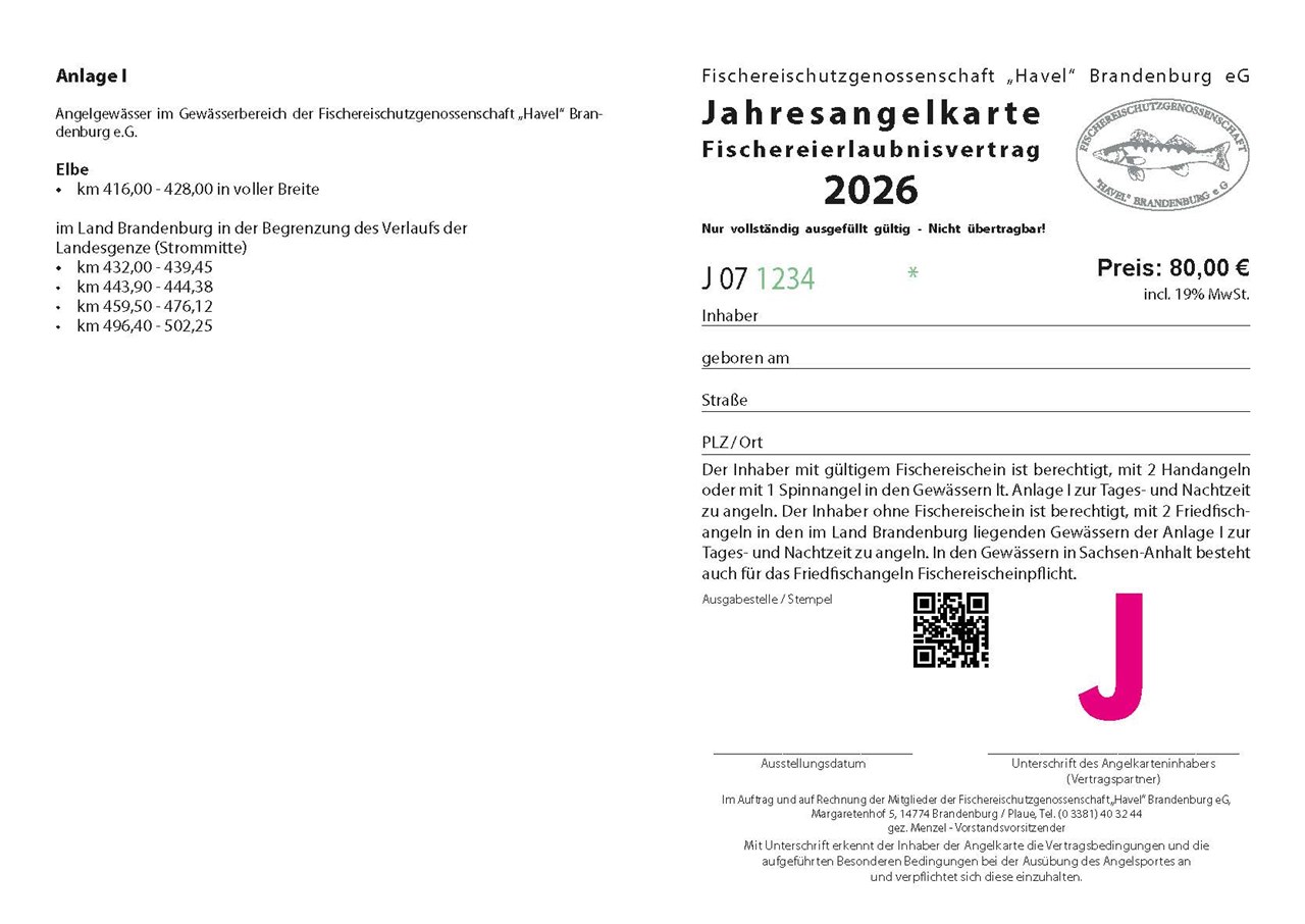 Verfügbarkeit D07 - Digitale Jahreskarte Elbabschnitte Fried- und Raubfisch inkl. Nacht D07 Vorname Nachname Straße Hausnummer Postleitzahl Ort Geburtsdatum Tag12345678910111213141516171819202122232425262728293031MonatJanuarFebruarMärzAprilMaiJuniJuliAugustSeptemberOktoberNovemberDezemberJahr1927192819291930193119321933193419351936193719381939194019411942194319441945194619471948194919501951195219531954195519561957195819591960196119621963196419651966196719681969197019711972197319741975197619771978197919801981198219831984198519861987198819891990199119921993199419951996199719981999200020012002200320042005200620072008200920102011201220132014201520162017201820192020202120222023202420252026 80,00 € * inkl. MwSt. , Versandkostenfrei Menge: In den Warenkorb Weitersagen Fragen zum Artikel? Details Fischereierlaubnisschein Fischereierlaubnisvertrag (Angelkarte) D07 Berechtigung für folgende Gewässer und Strecken: Elbe von km 416,00 - 428,00 in voller Breite Elbe von km 432,00 - 439,45; km 443,90 - 444,38; km 459,50 - 476,12 und km 496,40 - 502,25 in der Begrenzung des Verlaufs der Landesgrenze (Strommitte)